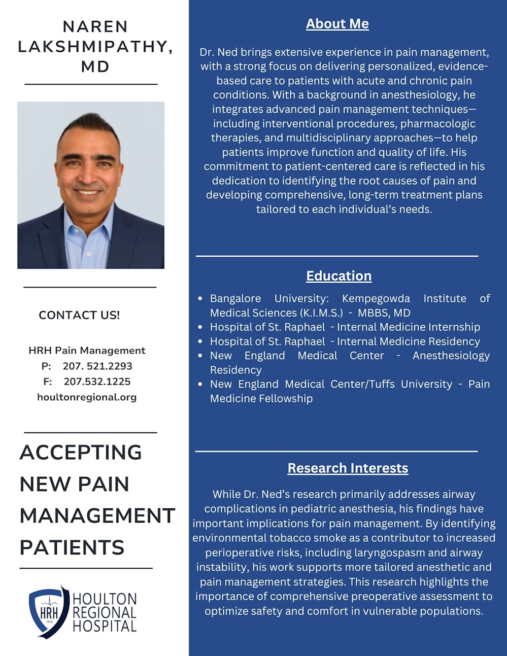 | Naren Lakshmipathy, MD | Pain Management | 521-2293 | 532-1225 |