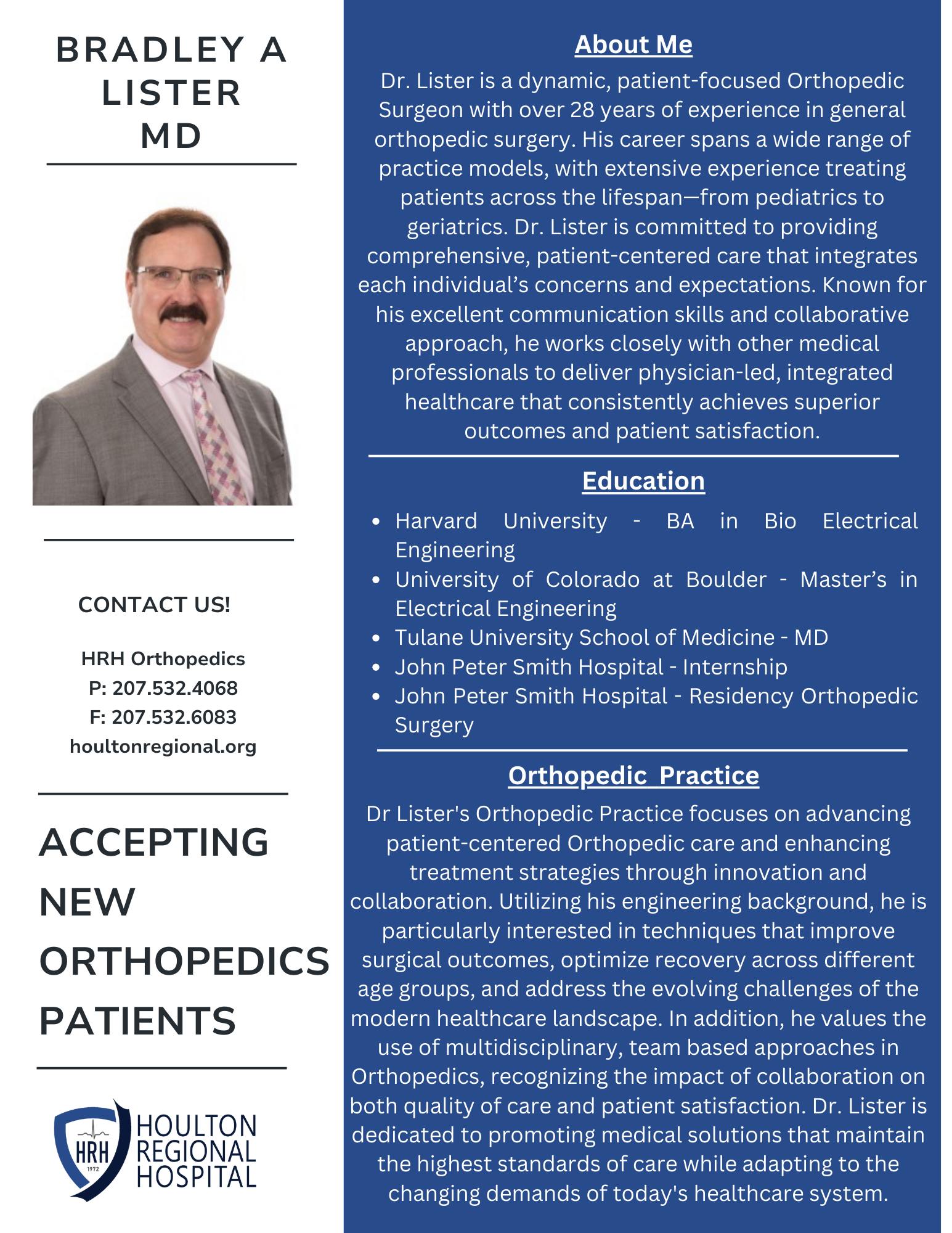 | Bradley Lister, MD | Orthopedic Surgeon | 532-4068 | 532-6083 |