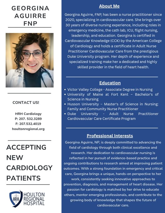 | Georgina Aguirre, FNP | Cardiology | 532-3289 | 532-4019 |