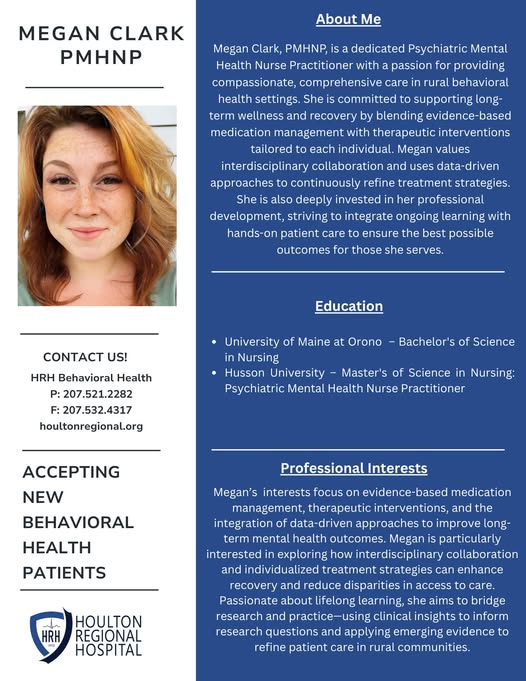 | Megan Clark, PMHNP | Behavioral Health | 521-2282 | 532-4317 |