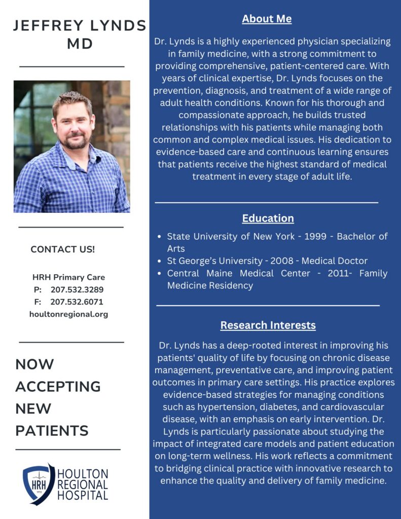We’re excited to welcome Jeffrey Lynds, MD to our team of primary care providers here at Houlton Regional Hospital!